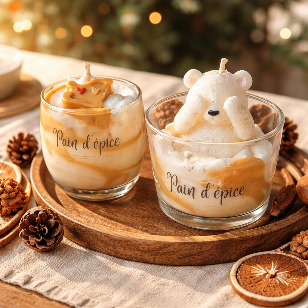 Sa base marbrée couleur miel et sa chantilly de cire blanche rappellent la texture fondante du pain d’épice fraîchement sorti du four 🍪