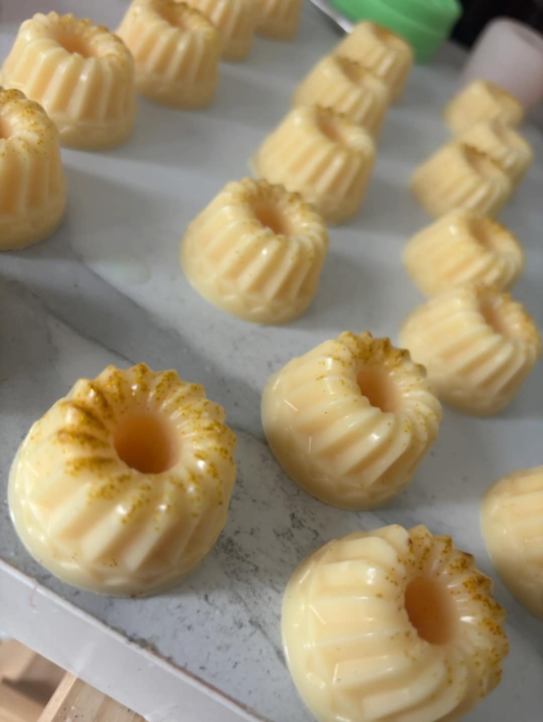 Veuillez bien noter qu’en tant que produit artisanal, chaque fondant peut présenter de légères variations, notamment au niveau de la couleur ou de l’aspect, rendant chaque création unique tout en conservant la même qualité et diffusion parfumée.